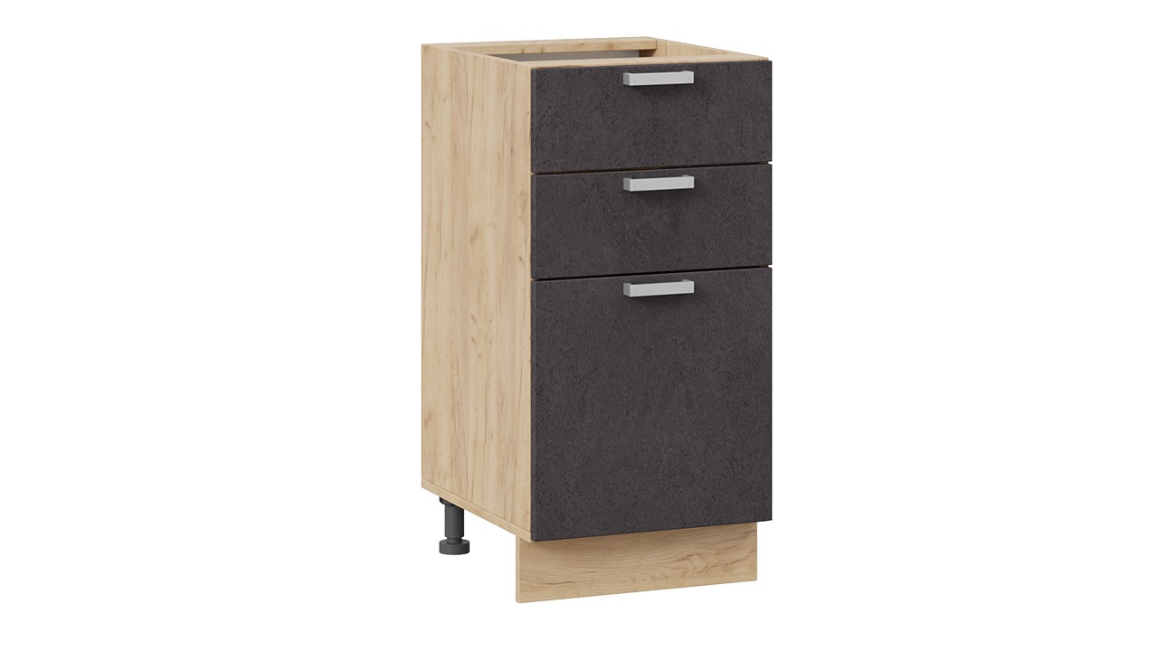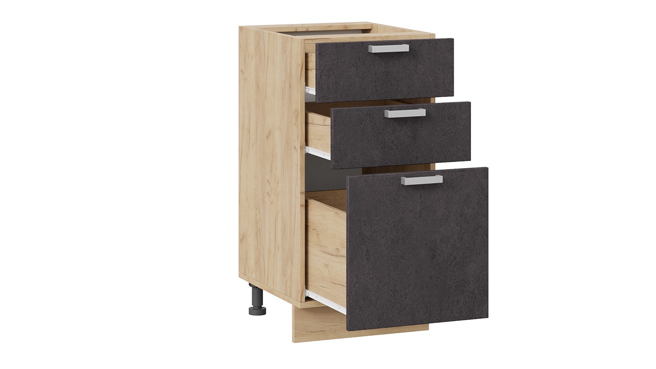 Шкаф напольный с тремя ящиками «Гранита» - 1Н4Я3 Дуб Крафт золотой, Бетон графит – 1 шт.