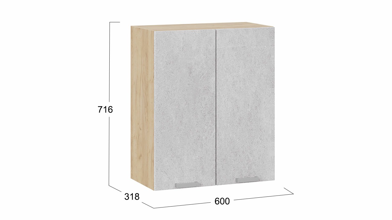 Шкаф навесной c двумя дверями «Гранита» - 1В6 Дуб Крафт золотой, Бетон снежный – 1 шт.