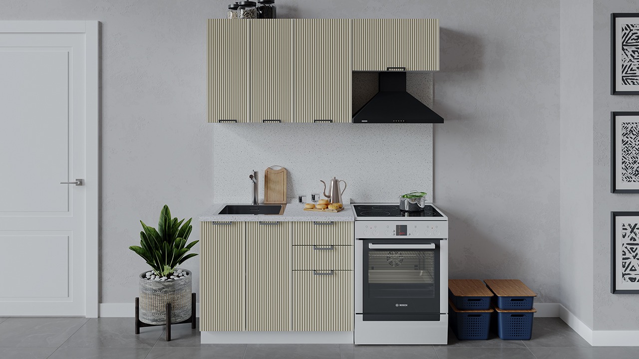 | Габаритный размер набора модулей без учета газовой плиты1 600 | Оттенок фасадаБежевый | Цвет ручкиМеталл |