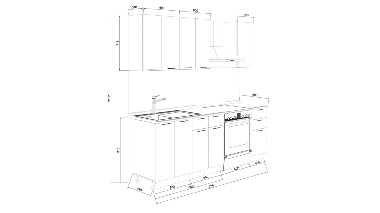 | Габаритный размер набора модулей без учета газовой плиты | 1 600 |