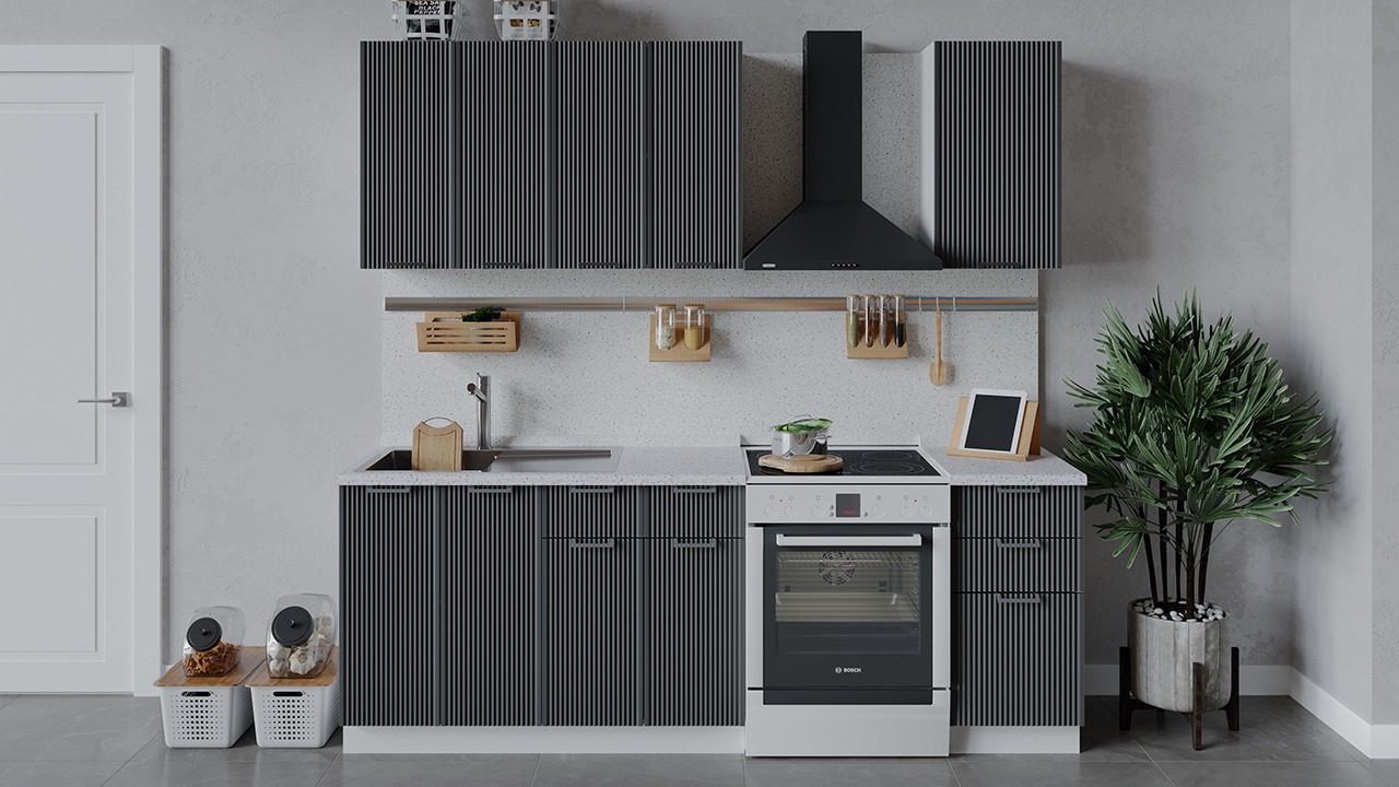 | Габаритный размер набора модулей без учета газовой плиты1 600 | Оттенок фасадаСерый | Цвет ручкиМеталл |