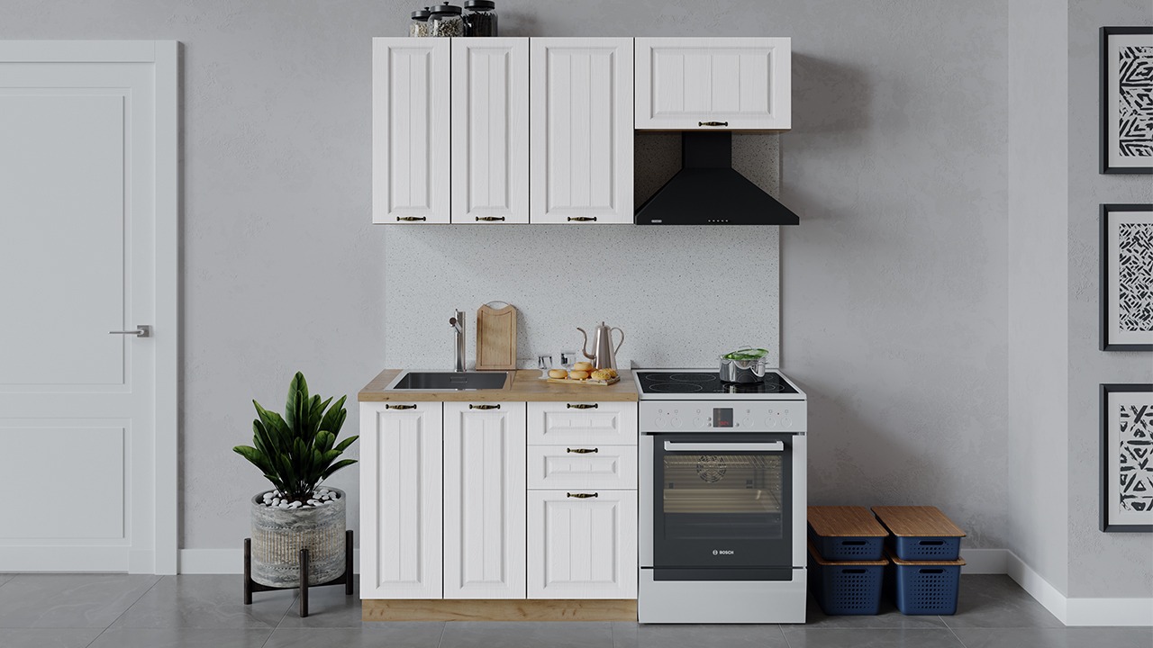 | Габаритный размер набора модулей без учета газовой плиты1 600 | Оттенок фасадаБелый | Цвет ручкиБрашированная старинная бронза |