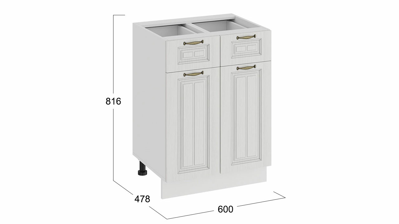 Шкаф напольный с двумя ящиками и двумя дверями «Лина» - 1Н6Я1 Белый – 1 шт.