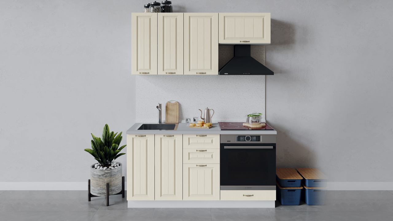 | Габаритный размер набора модулей без учета газовой плиты1 600 | Оттенок фасадаБежевый | Цвет ручкиБрашированная старинная бронза |