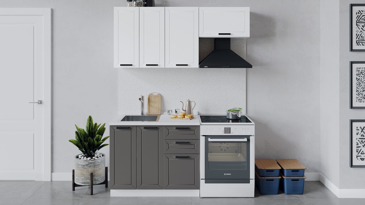 | Габаритный размер набора модулей без учета газовой плиты1 600 | Оттенок фасадаБелый, Серый | Цвет ручкиЧерный |