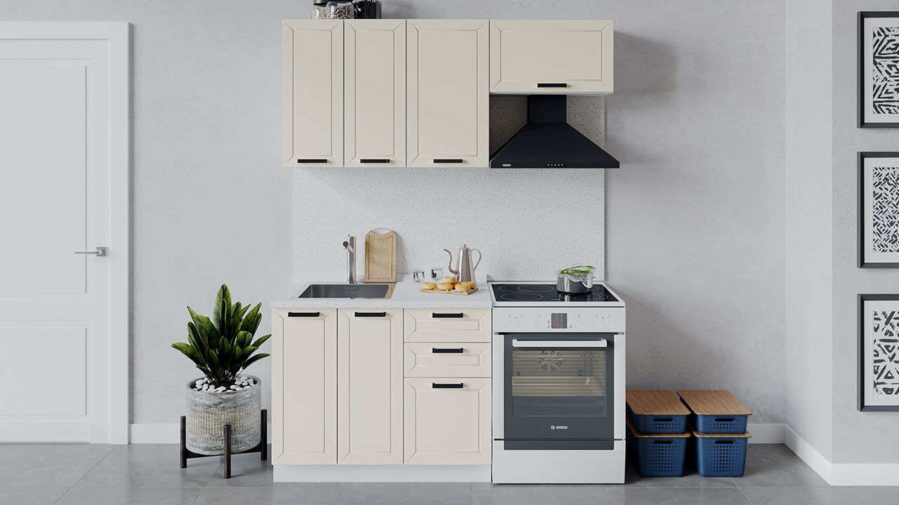 | Габаритный размер набора модулей без учета газовой плиты1 600 | Оттенок фасадаБежевый | Цвет ручкиЧерный |