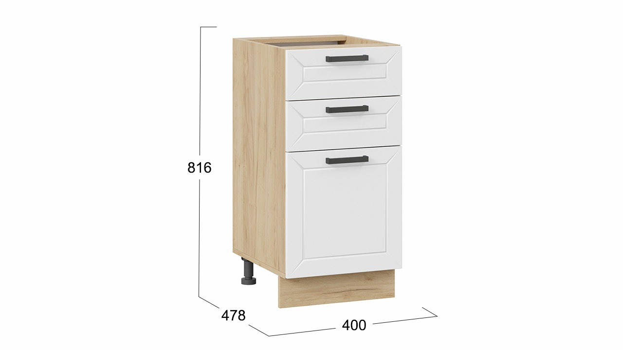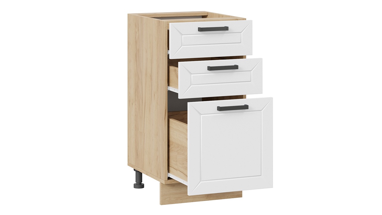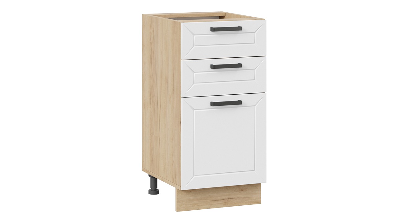 Шкаф напольный с тремя ящиками «Лорас» - 1Н4Я3 Дуб Крафт золотой, Холст Белый – 1 шт.