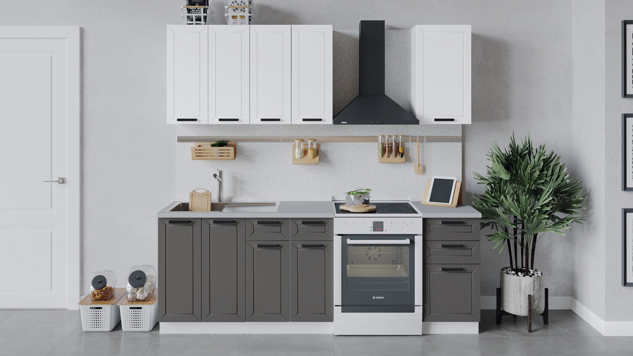 | Габаритный размер набора модулей без учета газовой плиты1 600 | Оттенок фасадаБелый, Серый | Цвет ручкиЧерный |