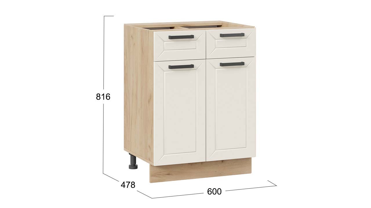 Шкаф напольный с двумя ящиками и двумя дверями «Лорас» - 1Н6Я1 Дуб Крафт золотой, Холст брюле – 1 шт.