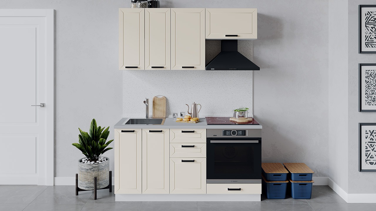 | Габаритный размер набора модулей без учета газовой плиты1 600 | Оттенок фасадаБежевый | Цвет ручкиЧерный |