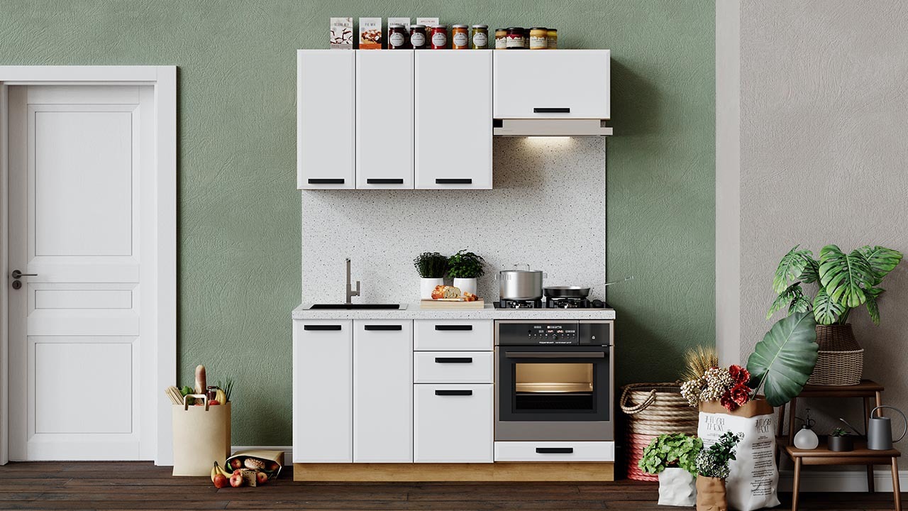 | Габаритный размер набора модулей без учета газовой плиты1 600 | Оттенок фасадаБелый | Цвет фасадаБелый супермат |