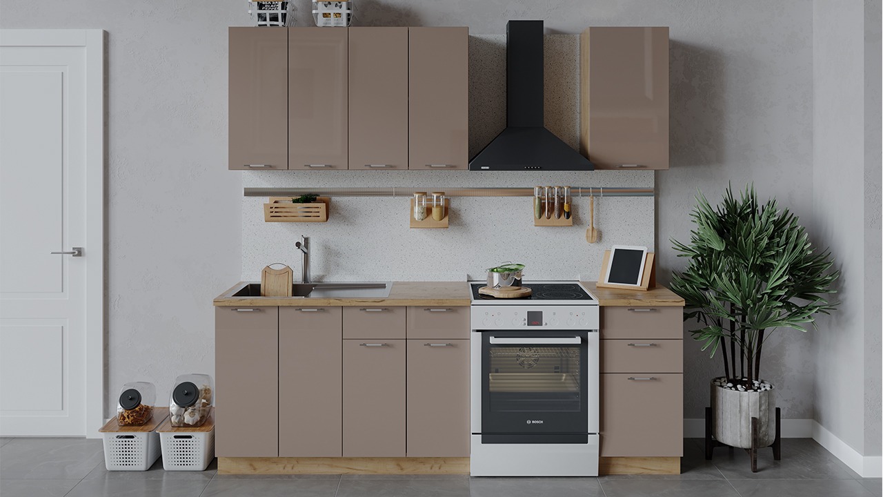 | Габаритный размер набора модулей без учета газовой плиты1 600 | Оттенок фасадаКоричневый | Цвет ручкиАлюминий, Хром |