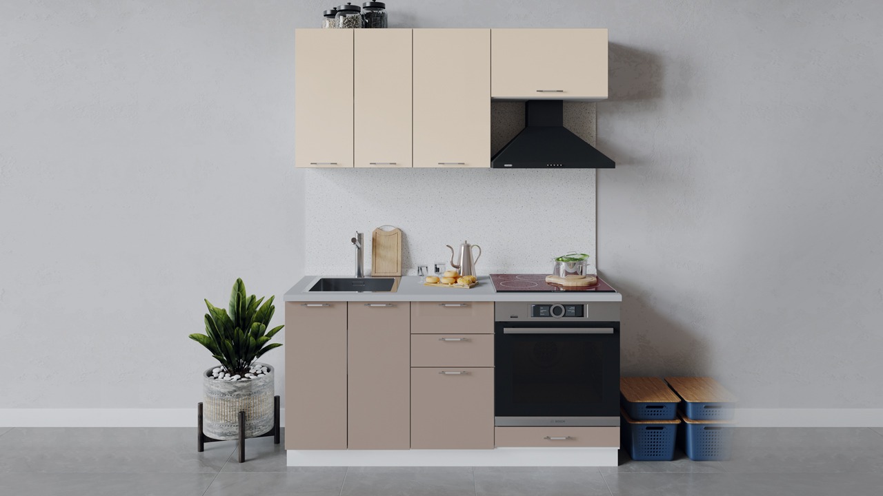 | Габаритный размер набора модулей без учета газовой плиты1 600 | Оттенок фасадаБежевый, Коричневый | Цвет ручкиАлюминий, Хром |