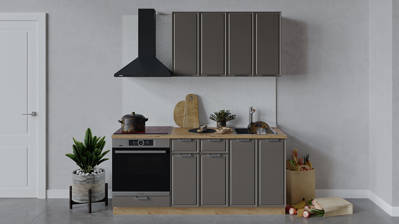| Габаритный размер набора модулей без учета газовой плиты1 800 | Оттенок фасадаКоричневый | Цвет ручкиМеталл |