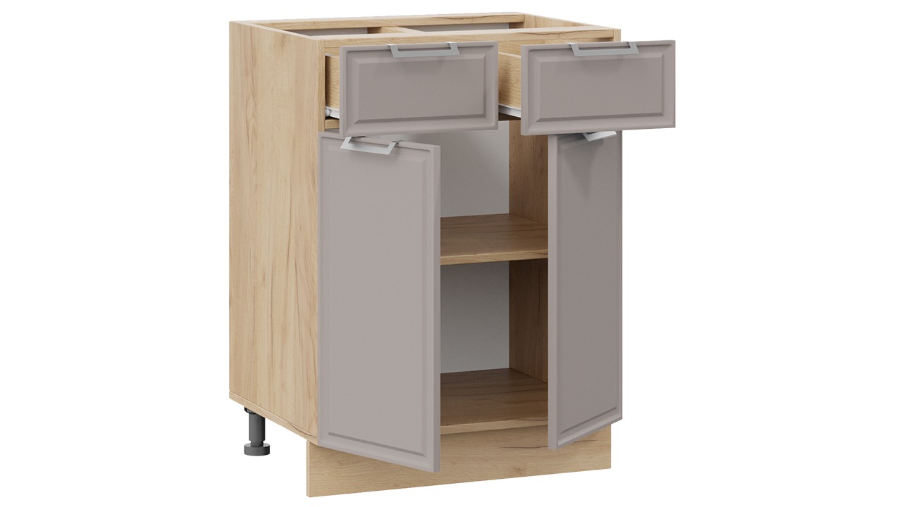 Шкаф напольный с двумя ящиками и двумя дверями «Белладжио» - 1Н6Я1 Дуб Крафт золотой, Софт капучино – 1 шт.