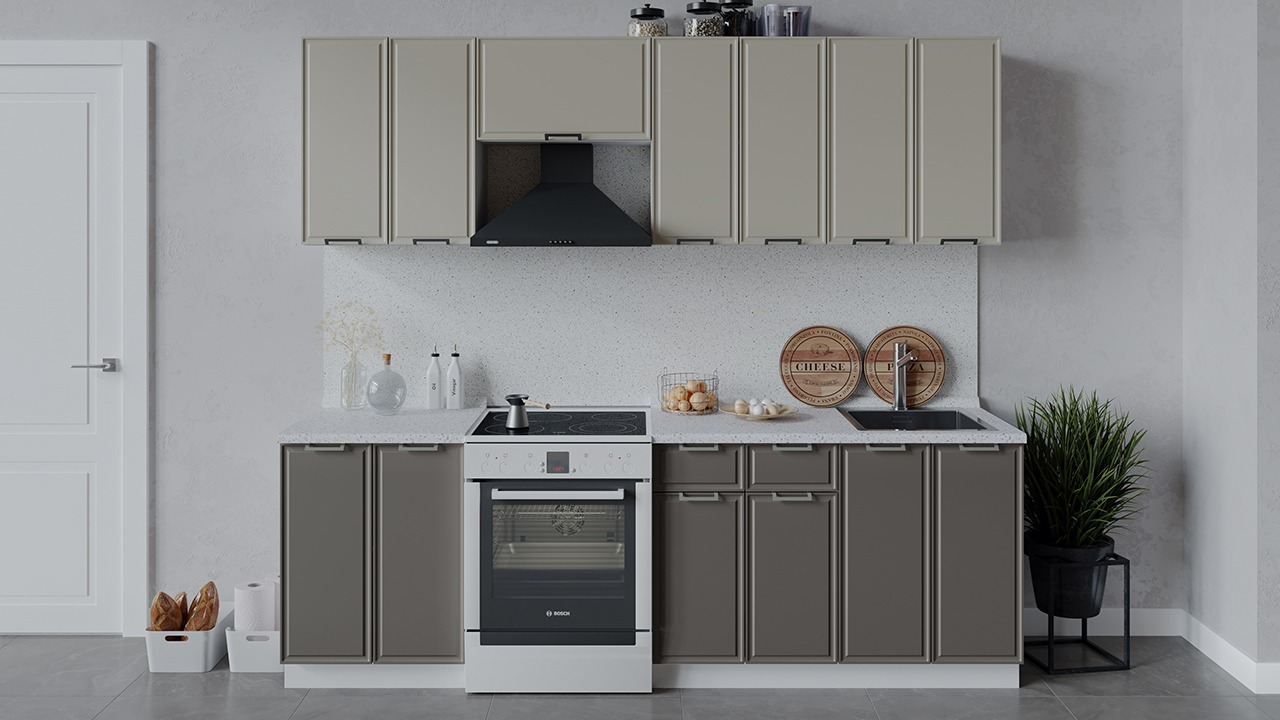 | Габаритный размер набора модулей без учета газовой плиты2 400 | Оттенок фасадаБежевый, Коричневый | Цвет ручкиМеталл |