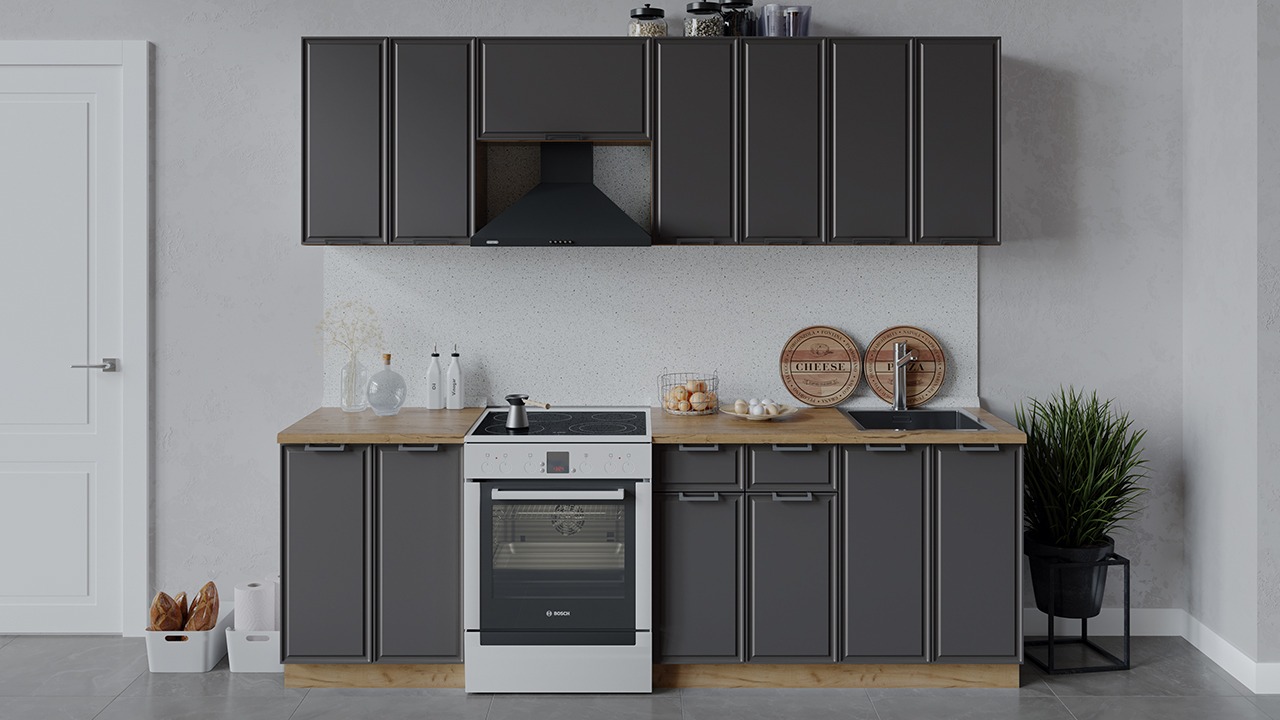 | Габаритный размер набора модулей без учета газовой плиты2 400 | Оттенок фасадаСерый | Цвет ручкиМеталл |