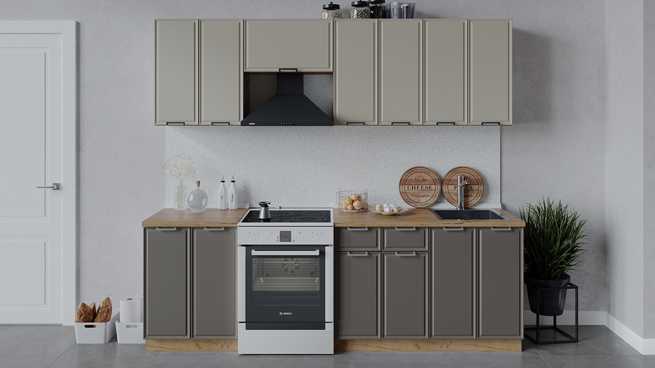 | Габаритный размер набора модулей без учета газовой плиты2 400 | Оттенок фасадаБежевый, Коричневый | Цвет ручкиМеталл |