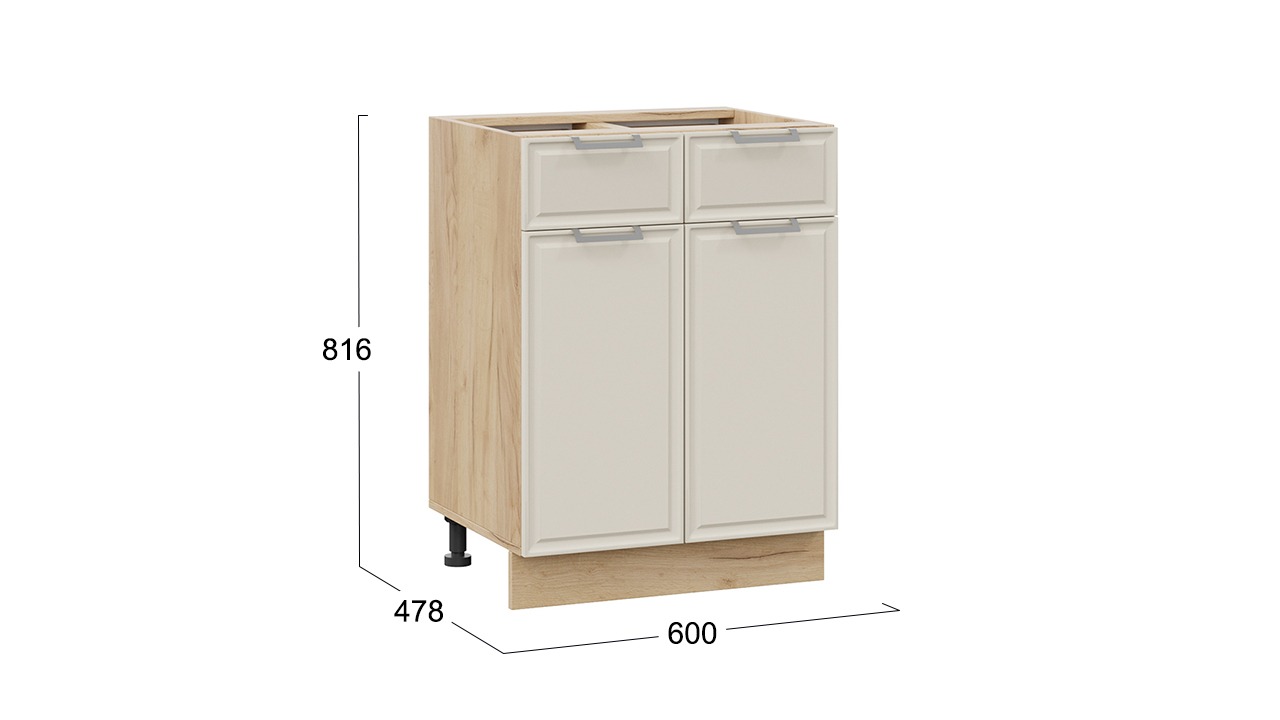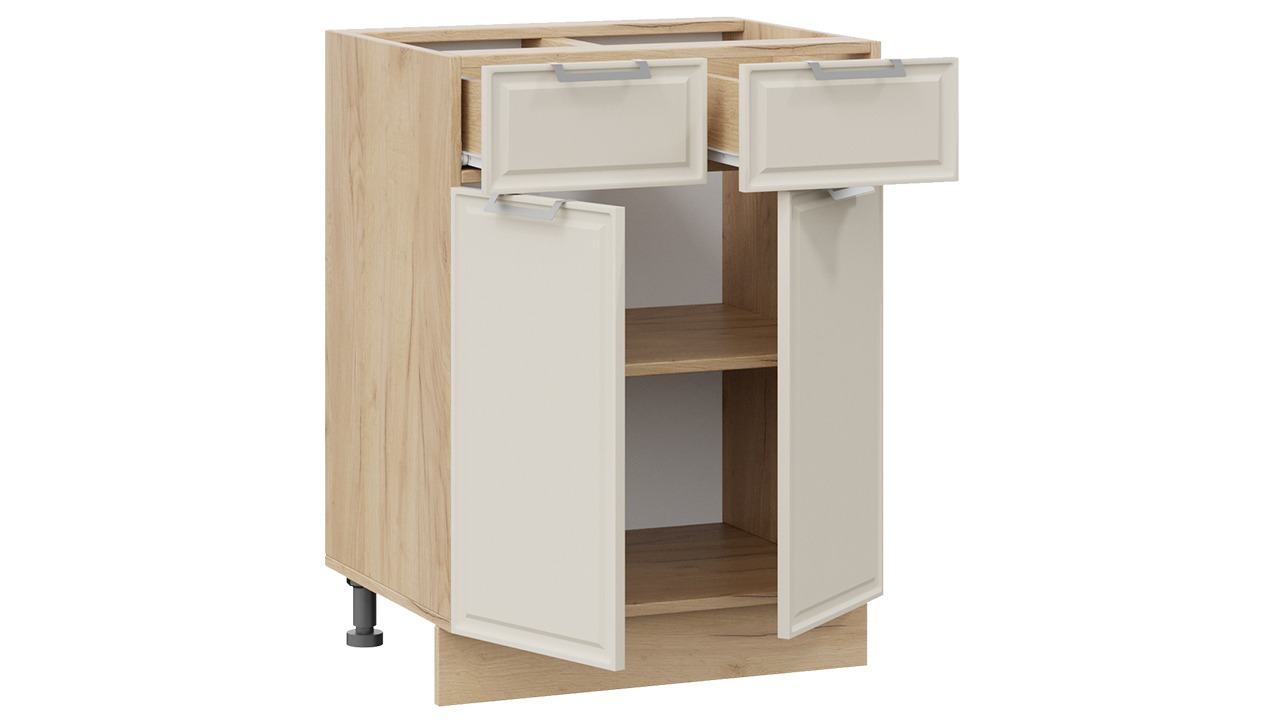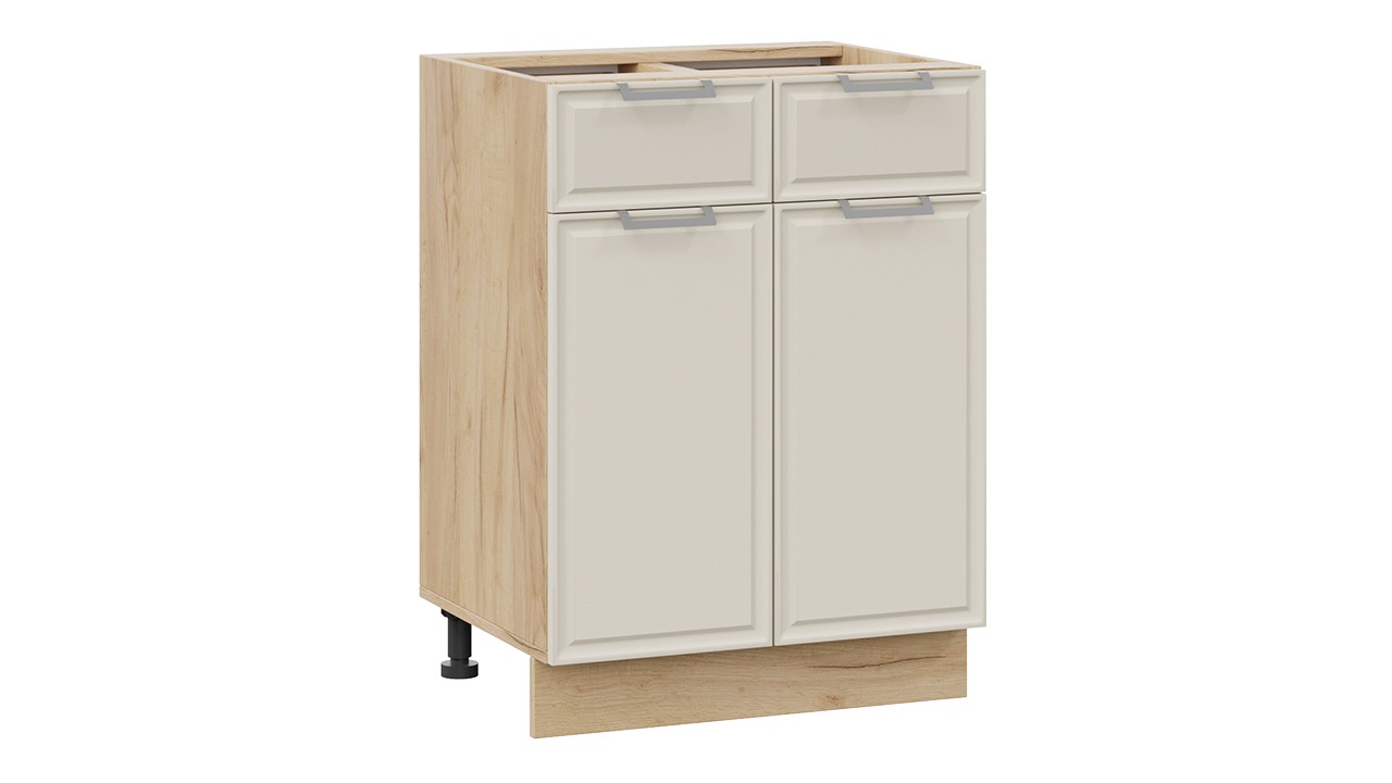 Шкаф напольный с двумя ящиками и двумя дверями «Белладжио» - 1Н6Я1 Дуб Крафт золотой, Софт панакота – 1 шт.