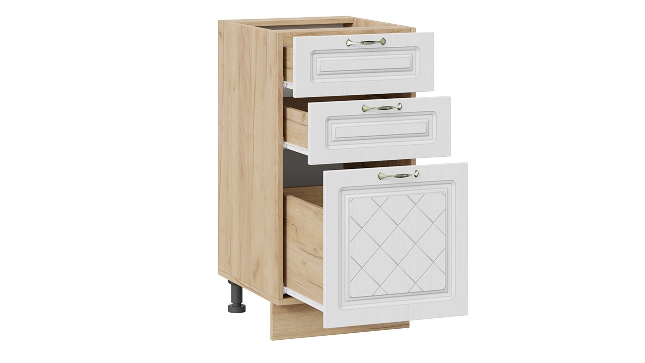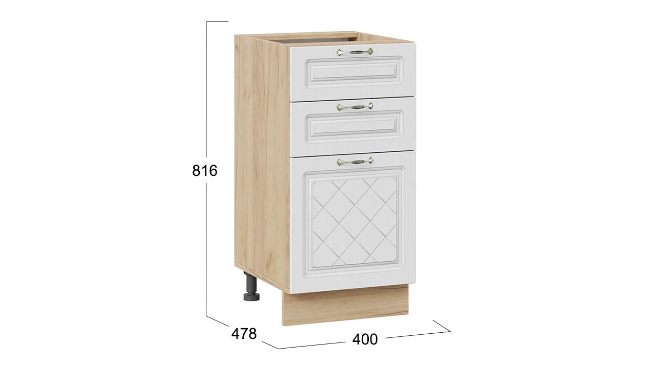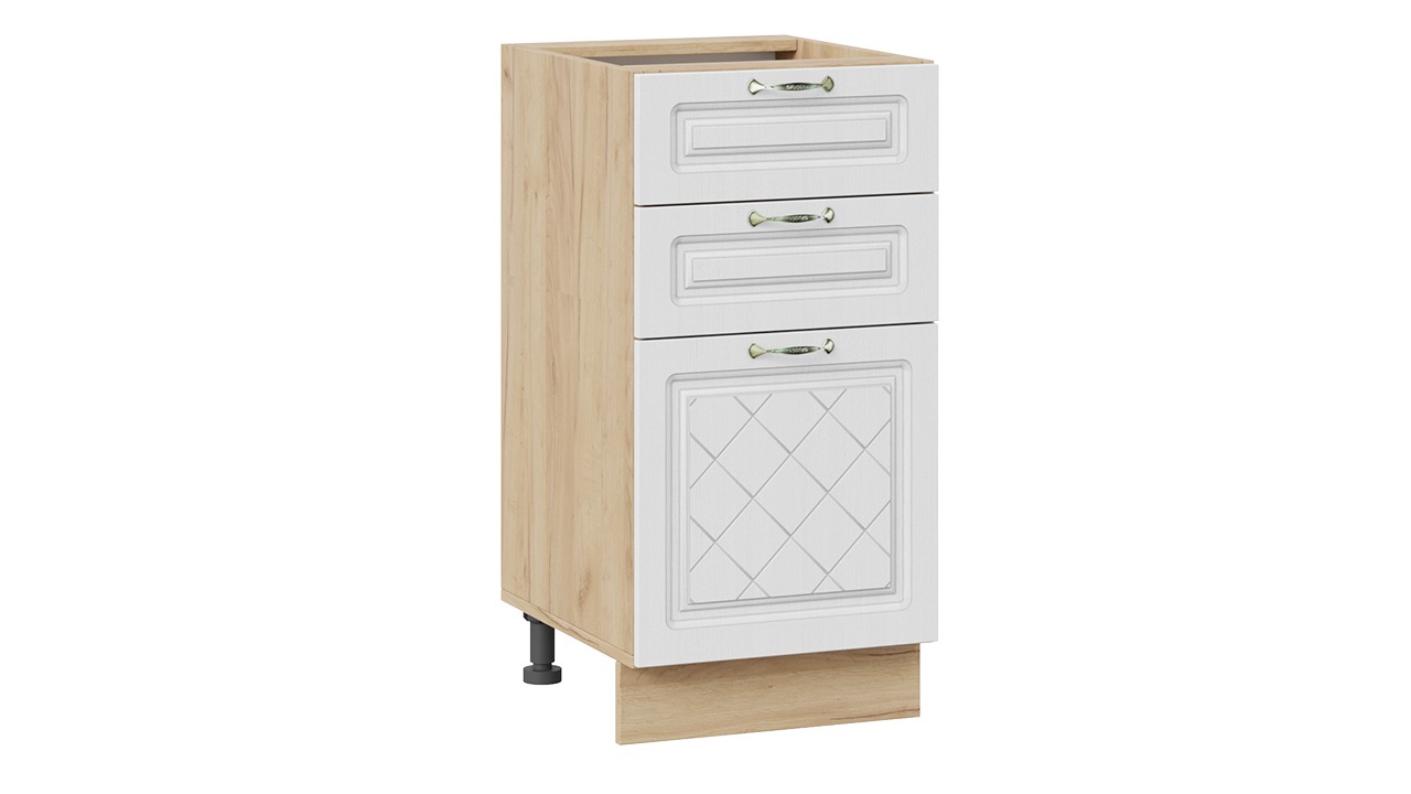 Шкаф напольный с тремя ящиками «Бьянка» - 1Н4Я3 Дуб Крафт золотой, Дуб белый – 1 шт.