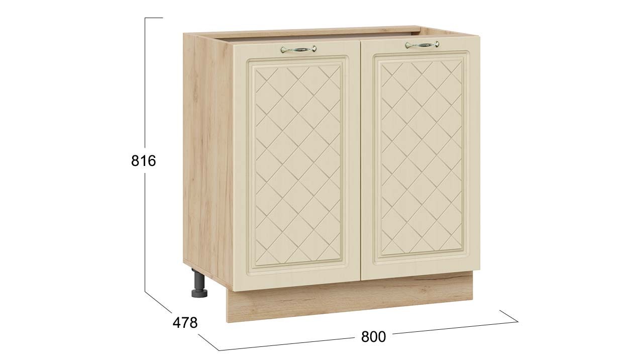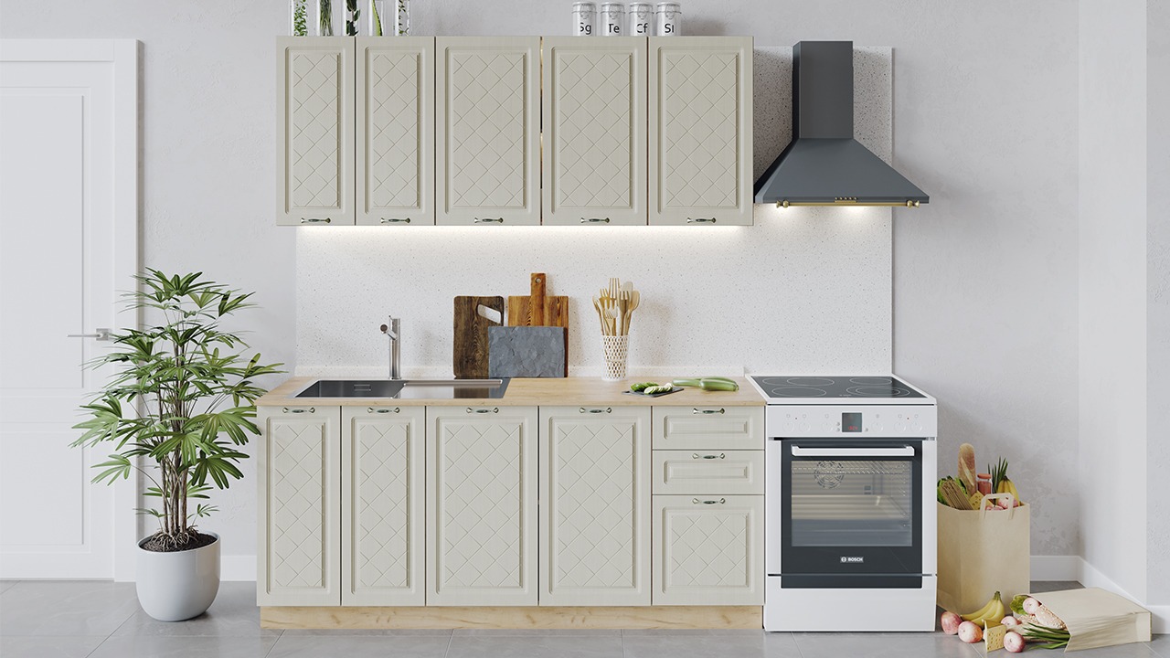 | Габаритный размер набора модулей без учета газовой плиты1 800 | Оттенок фасадаБежевый | Цвет ручкиБрашированная старинная бронза |