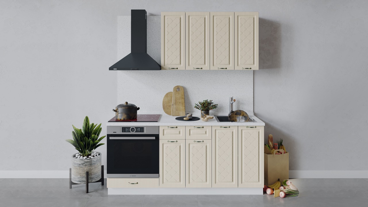 | Габаритный размер набора модулей без учета газовой плиты1 800 | Оттенок фасадаБежевый | Цвет ручкиБрашированная старинная бронза |