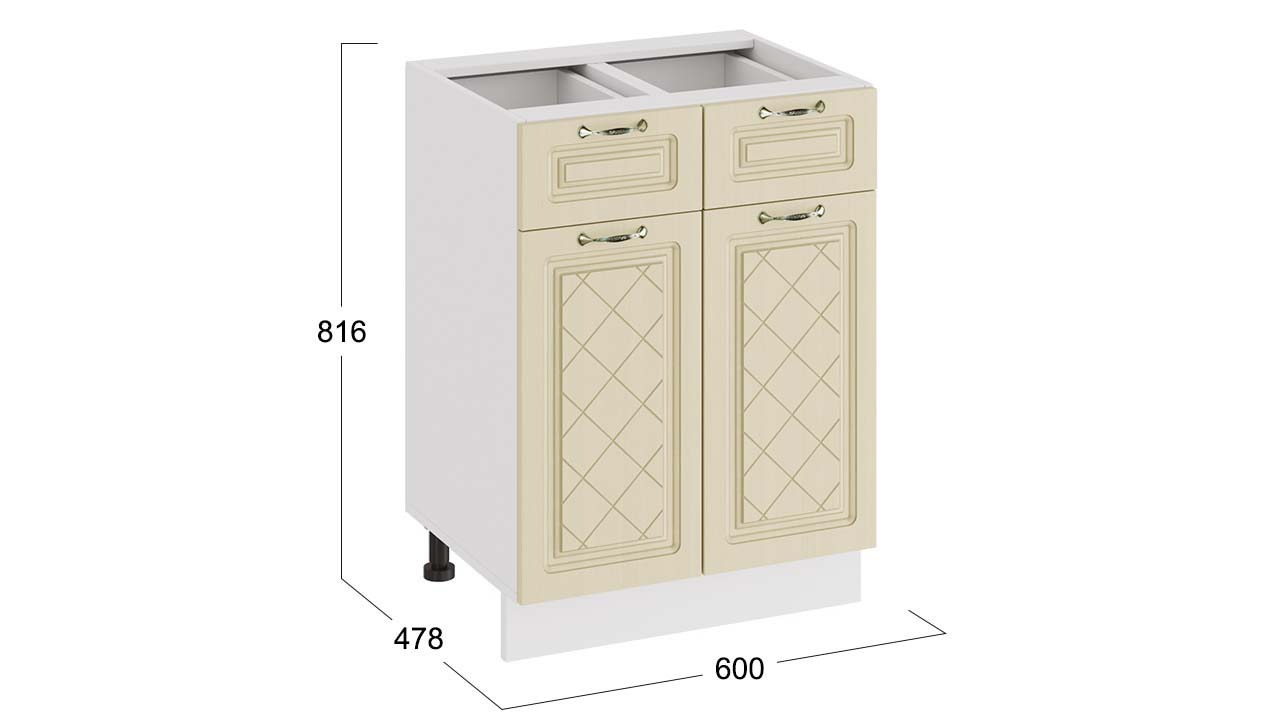 Шкаф напольный с двумя ящиками и двумя дверями «Бьянка» - 1Н6Я1 Белый, Дуб ваниль – 1 шт.