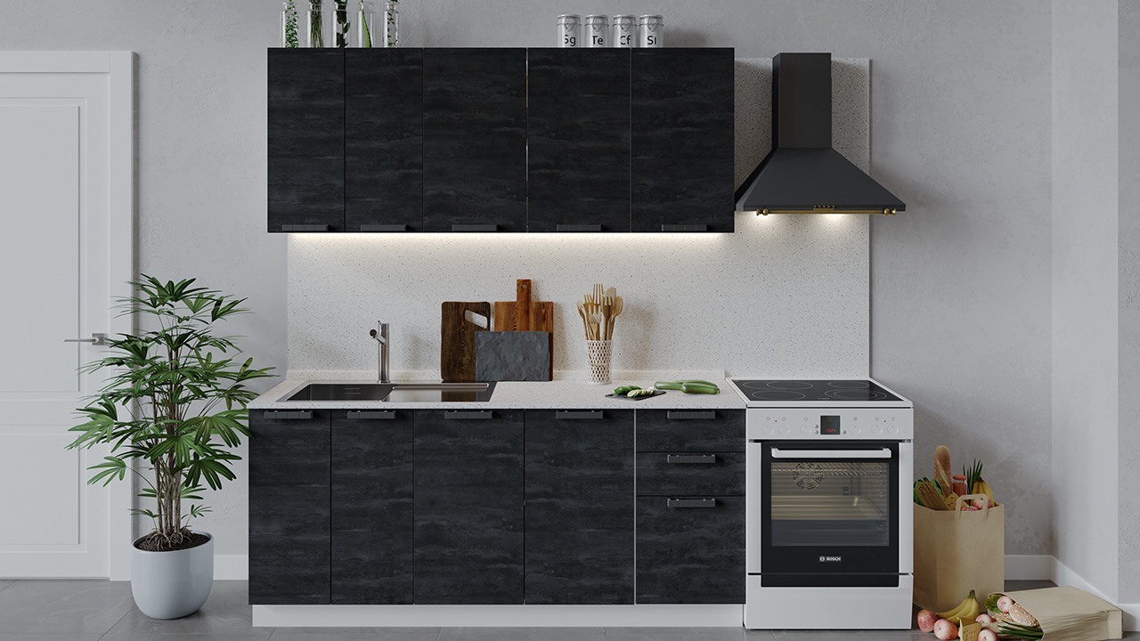 | Габаритный размер набора модулей без учета газовой плиты1 800 | Оттенок фасадаЧерный | Цвет ручкиЧерный |