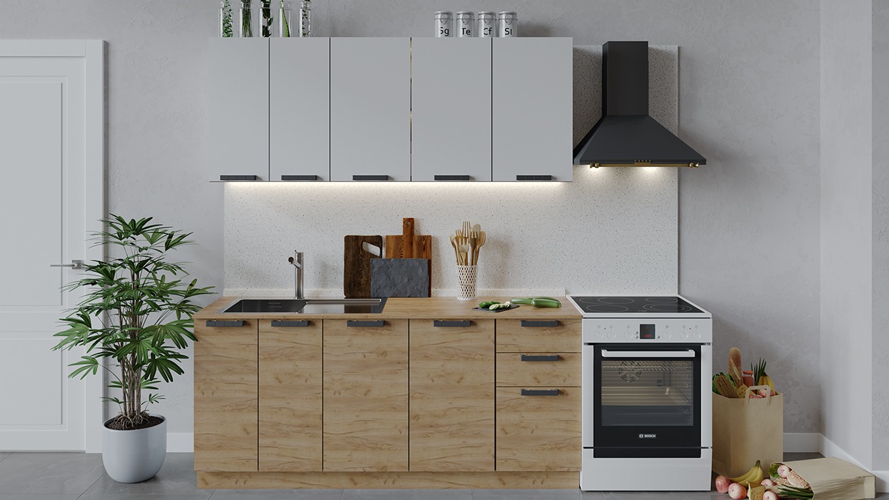| Габаритный размер набора модулей без учета газовой плиты1 800 | Оттенок фасадаБелый, Коричневый | Цвет ручкиЧерный |