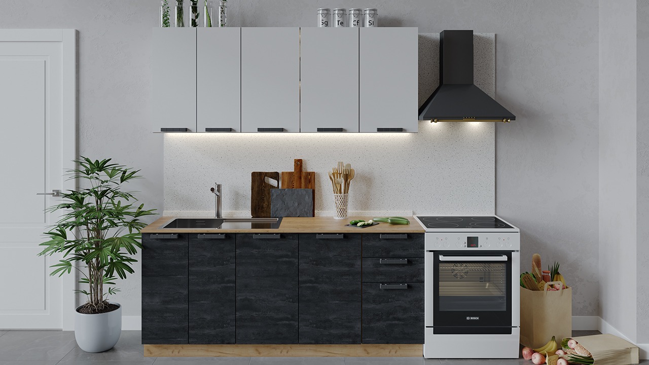 | Габаритный размер набора модулей без учета газовой плиты1 800 | Оттенок фасадаБелый, Черный | Цвет ручкиЧерный |