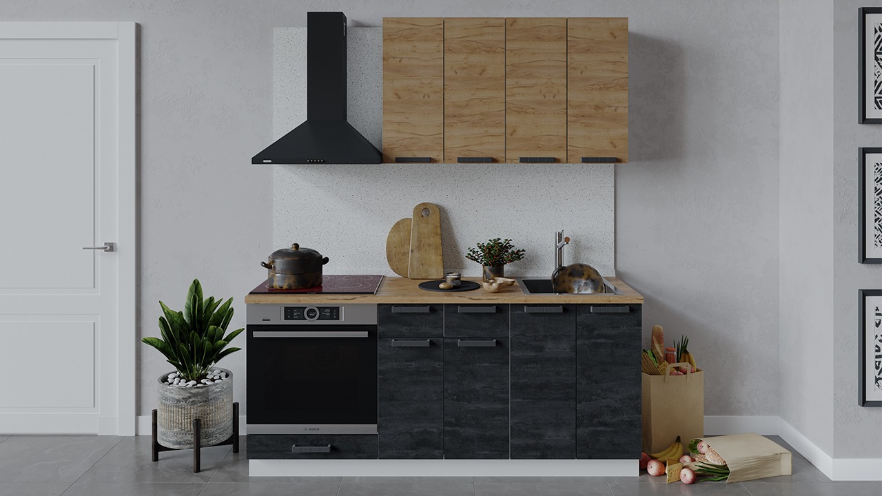 | Габаритный размер набора модулей без учета газовой плиты1 800 | Оттенок фасадаКоричневый, Черный | Цвет ручкиЧерный |