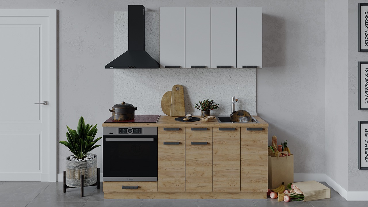 Габаритный размер набора модулей без учета газовой плиты: 180 см.