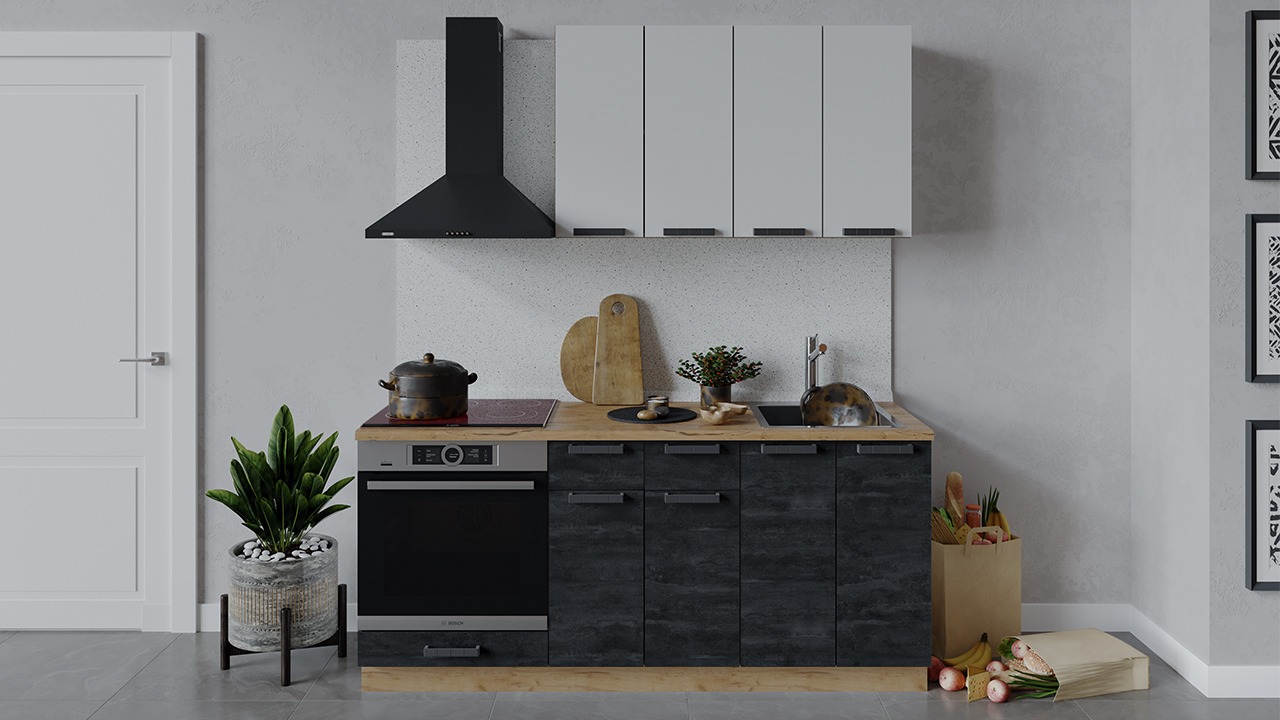 | Габаритный размер набора модулей без учета газовой плиты1 800 | Оттенок фасадаБелый, Черный | Цвет ручкиЧерный |