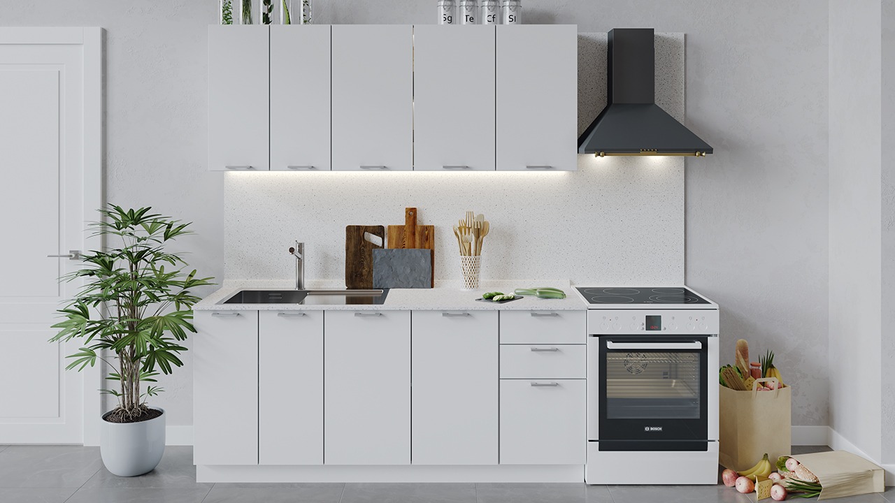 | Габаритный размер набора модулей без учета газовой плиты1 800 | Оттенок фасадаБелый | Цвет ручкиМеталл |