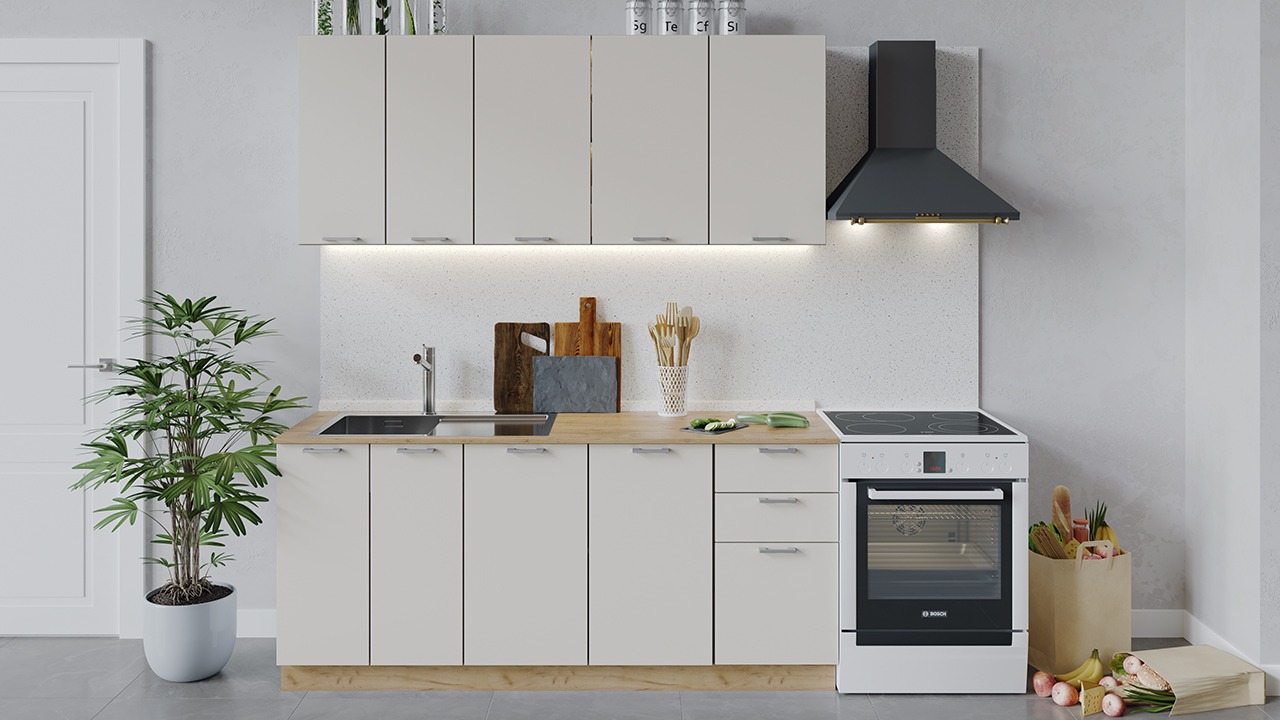 | Габаритный размер набора модулей без учета газовой плиты1 800 | Оттенок фасадаБежевый | Цвет ручкиМеталл |