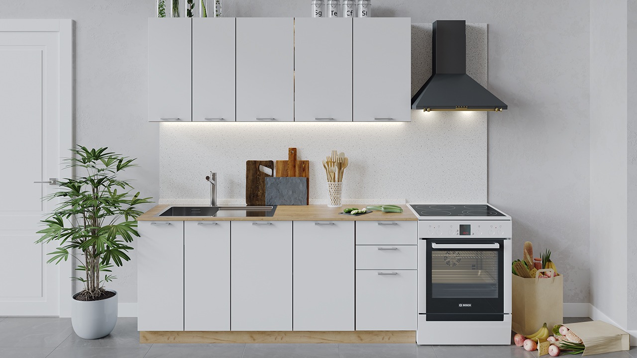 | Габаритный размер набора модулей без учета газовой плиты1 800 | Оттенок фасадаБелый | Цвет ручкиМеталл |