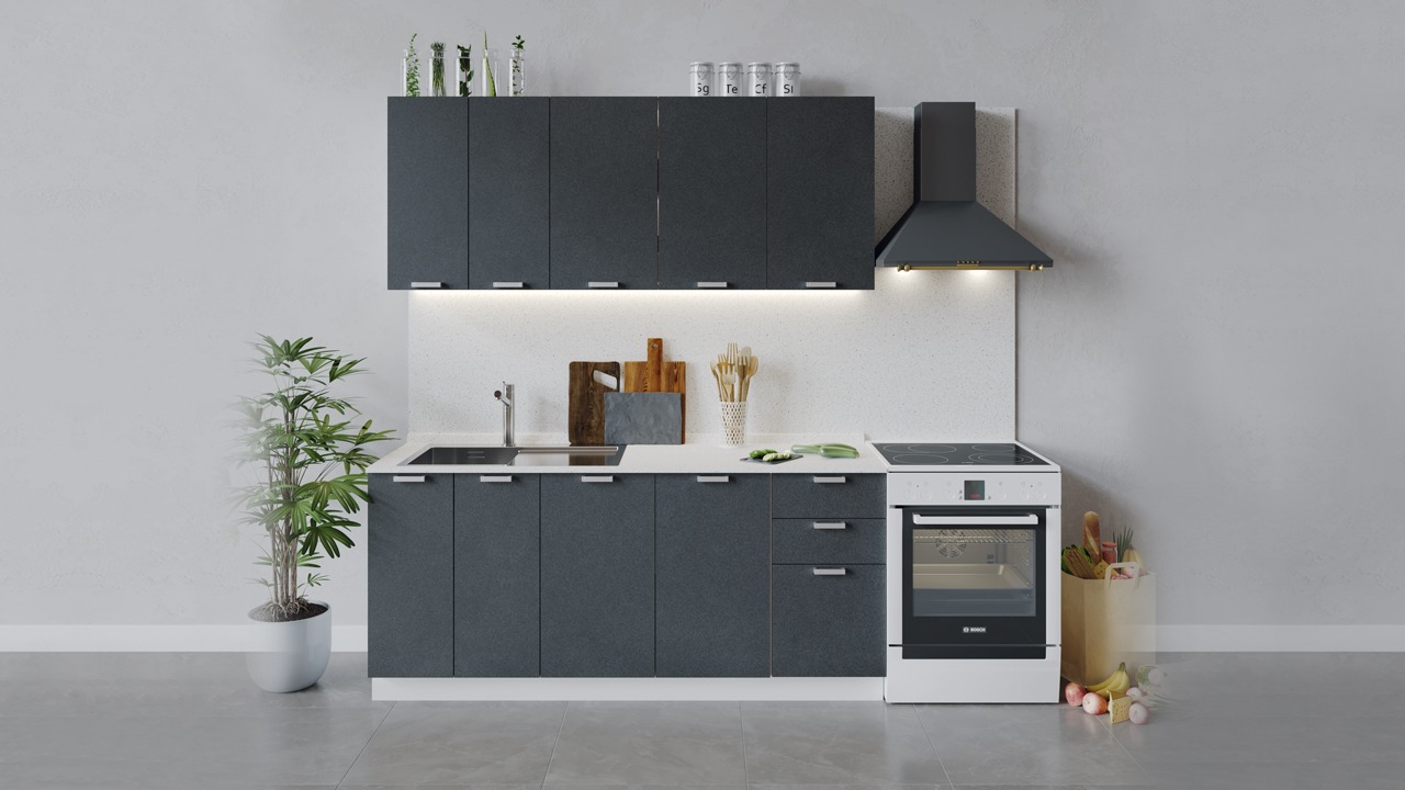 | Габаритный размер набора модулей без учета газовой плиты1 800 | Оттенок фасадаСерый | Цвет ручкиАлюминий |
