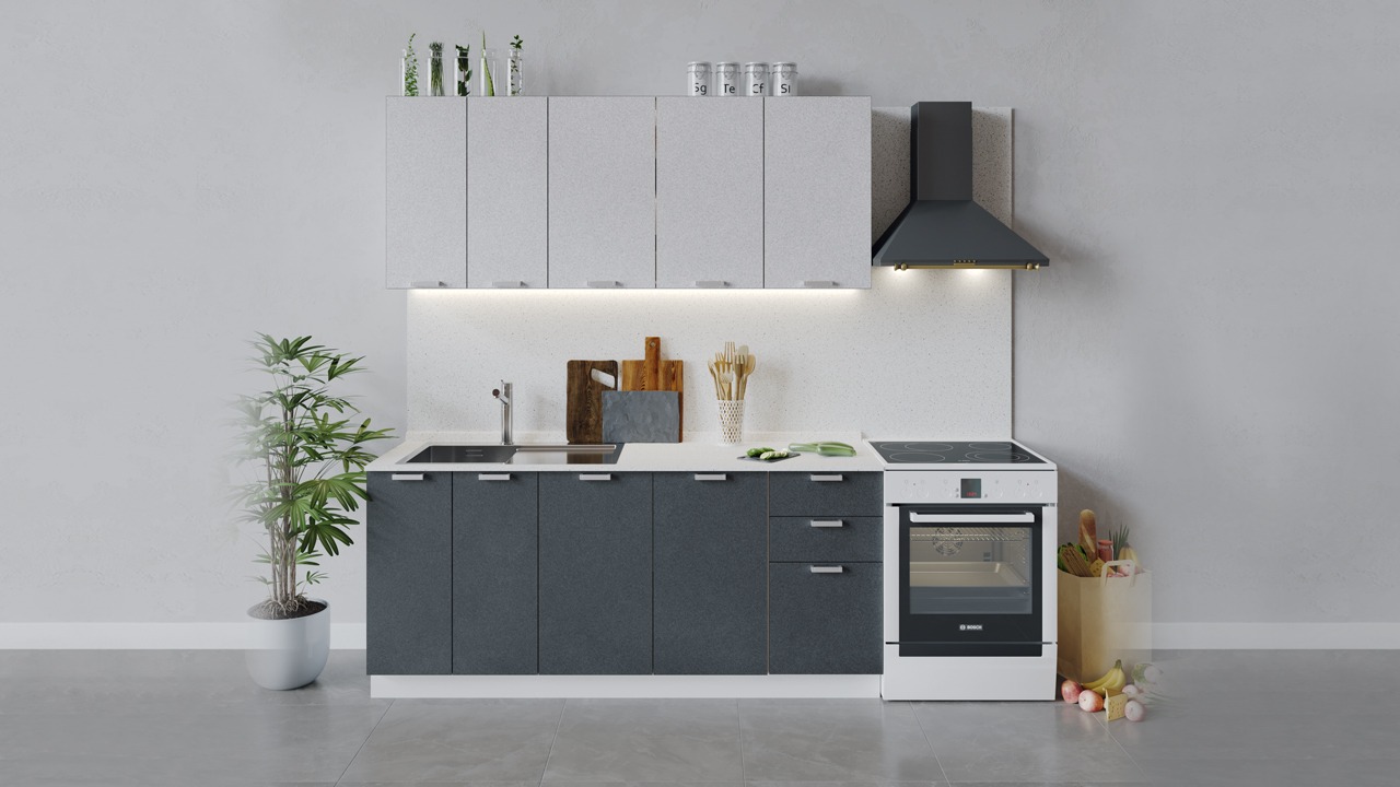| Габаритный размер набора модулей без учета газовой плиты1 800 | Оттенок фасадаСерый | Цвет ручкиАлюминий |