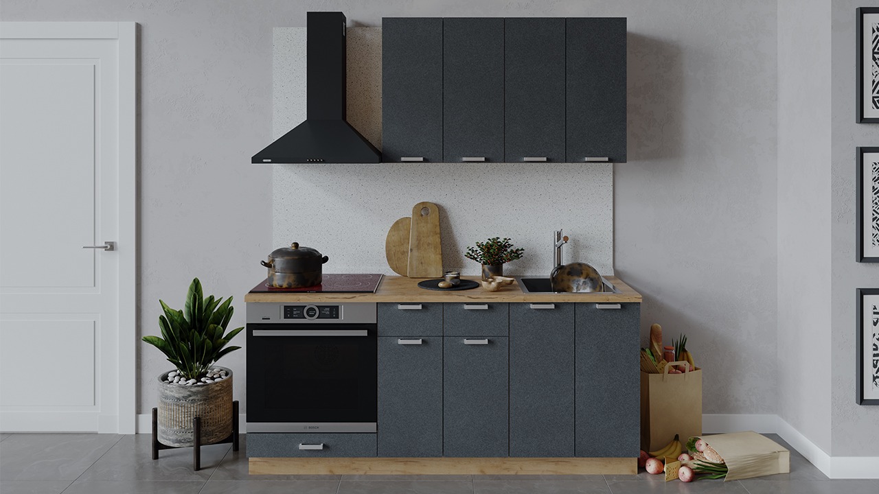 | Габаритный размер набора модулей без учета газовой плиты1 800 | Оттенок фасадаСерый | Цвет ручкиАлюминий |