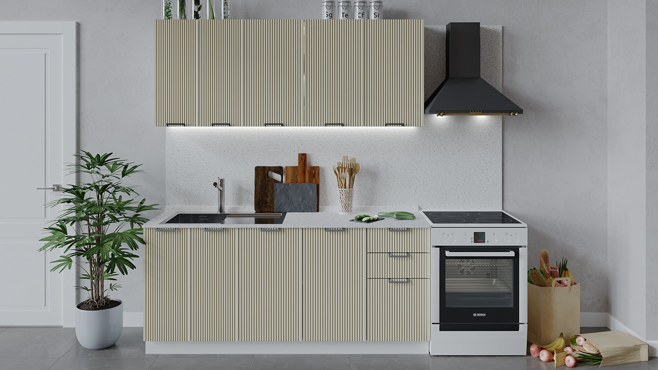 | Габаритный размер набора модулей без учета газовой плиты1 800 | Оттенок фасадаБежевый | Цвет ручкиМеталл |