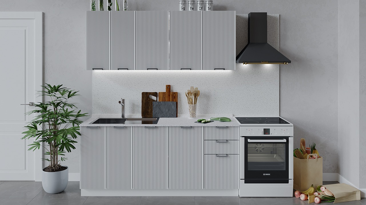 | Габаритный размер набора модулей без учета газовой плиты1 800 | Оттенок фасадаБелый | Цвет ручкиМеталл |