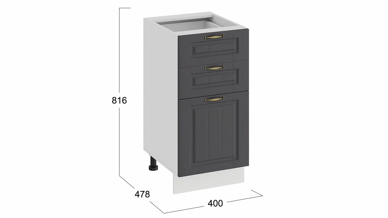 Шкаф напольный с тремя ящиками «Лина» - 1Н4Я3 Белый, Графит – 1 шт.