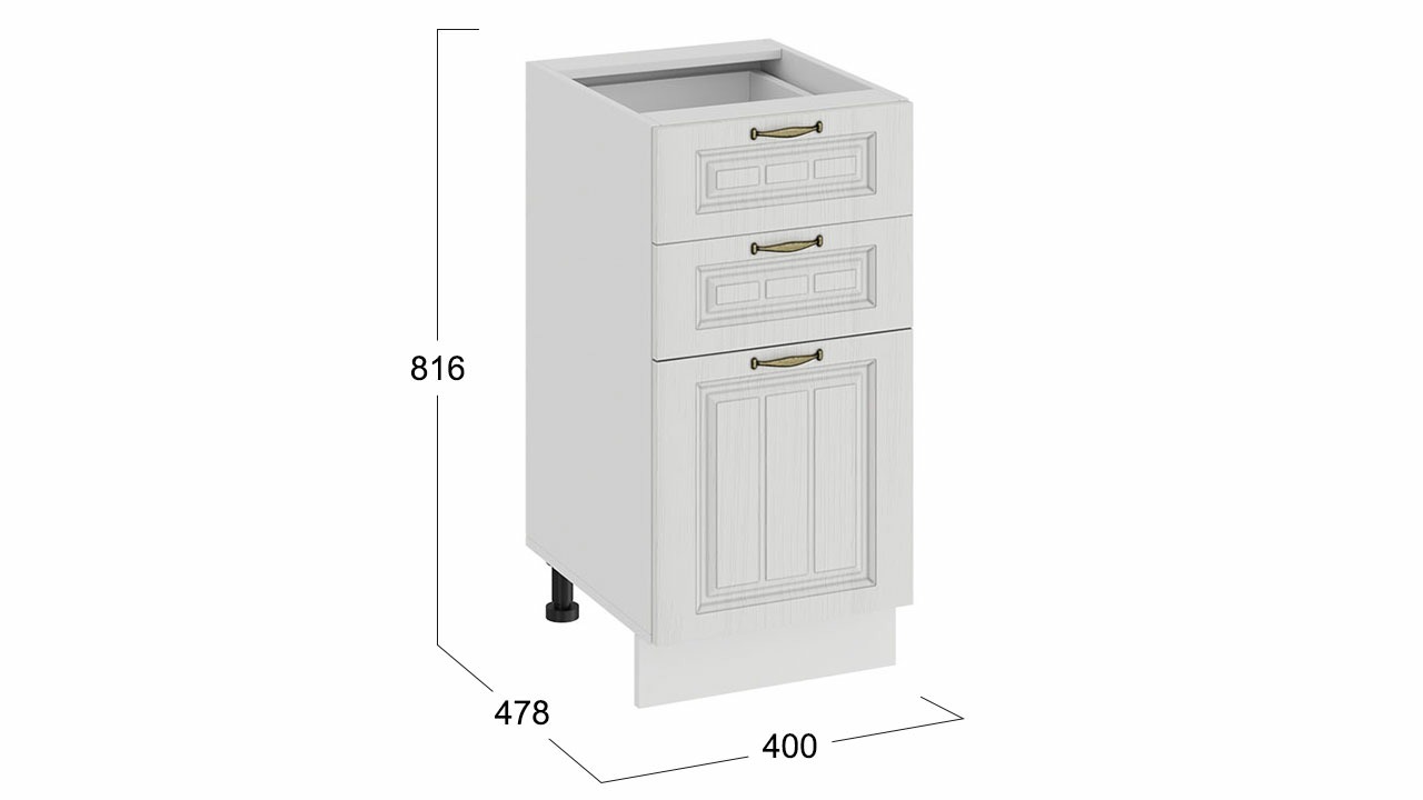 Шкаф напольный с тремя ящиками «Лина» - 1Н4Я3 Белый – 1 шт.