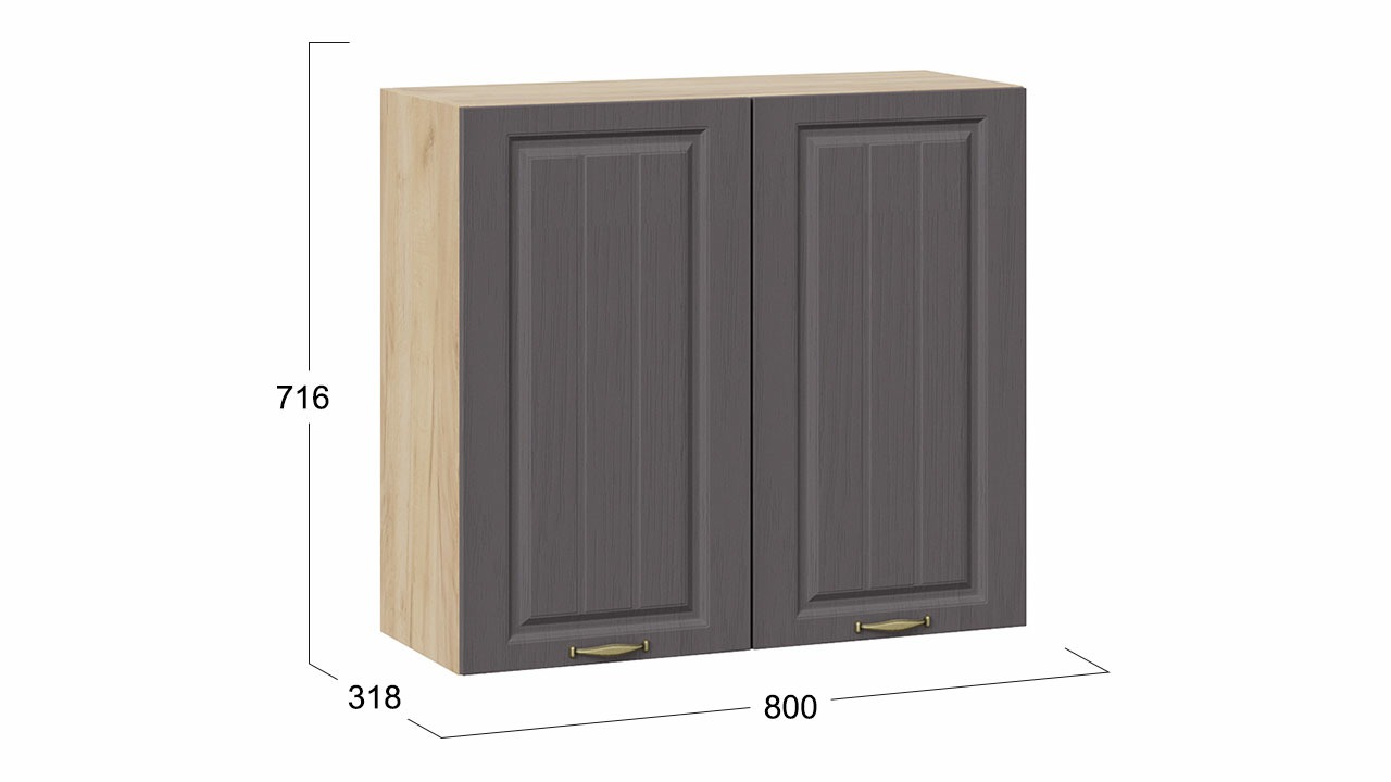 Шкаф навесной c двумя дверями «Лина» - 1В8 Дуб Крафт золотой, Графит – 1 шт.