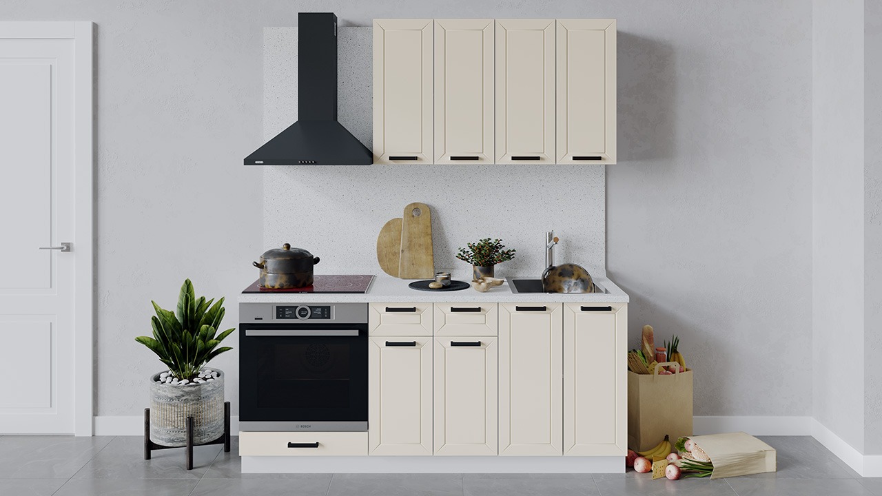 | Габаритный размер набора модулей без учета газовой плиты1 800 | Оттенок фасадаБежевый | Цвет ручкиЧерный |