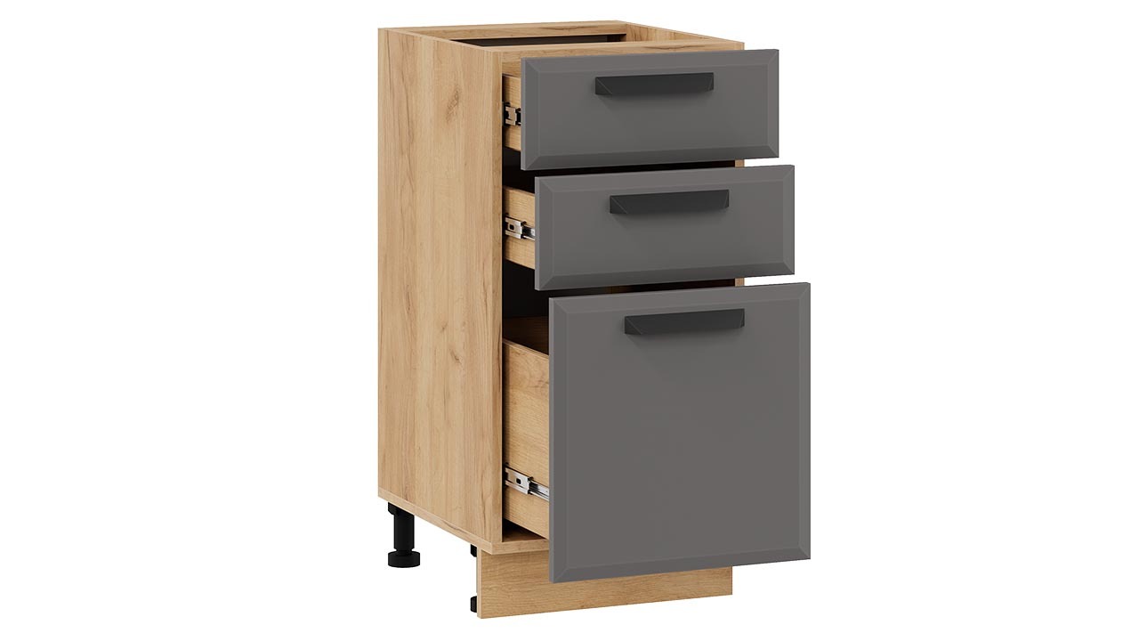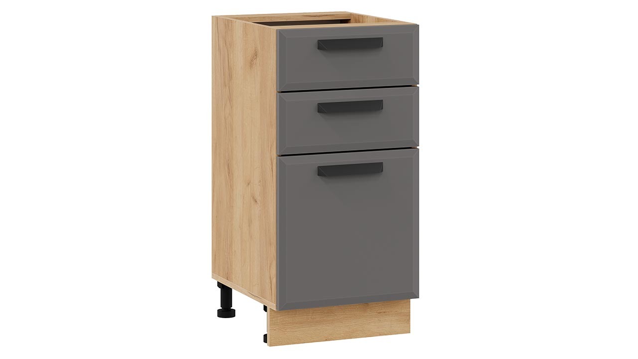 Шкаф напольный с тремя ящиками «Тиана» - 1Н4Я3 Дуб Крафт золотой, Асфальт супермат – 1 шт.