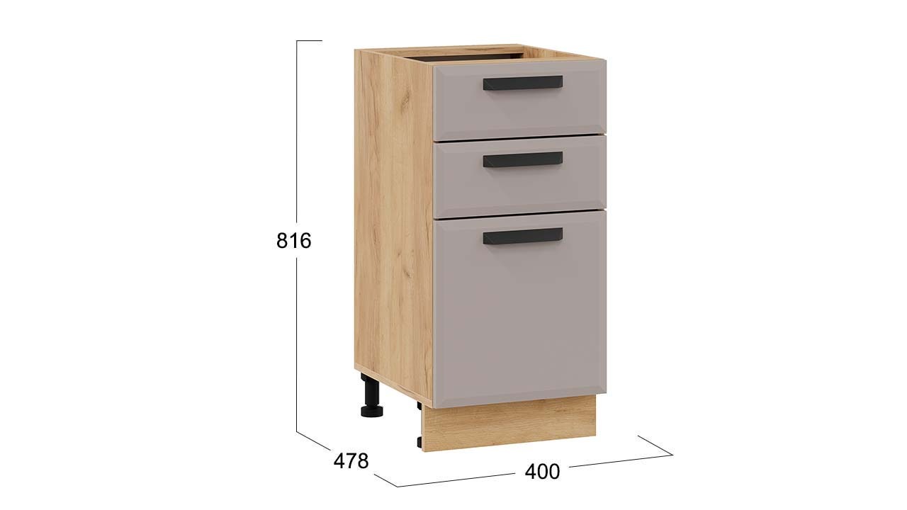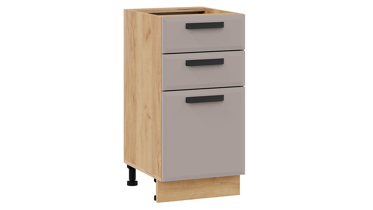 Шкаф напольный с тремя ящиками «Тиана» - 1Н4Я3 Дуб Крафт золотой, Мокко супермат – 1 шт.