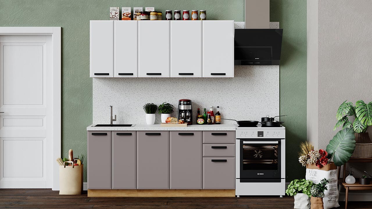 | Габаритный размер набора модулей без учета газовой плиты1 800 | Оттенок фасадаБелый, Коричневый | Цвет фасадаБелый супермат, Мокко супермат |