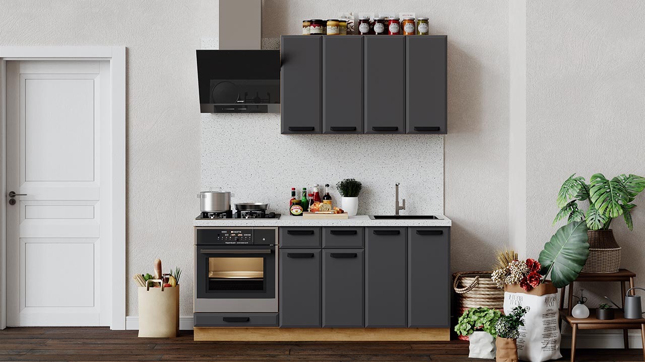 | Габаритный размер набора модулей без учета газовой плиты1 800 | Оттенок фасадаСерый | Цвет фасадаАсфальт супермат |