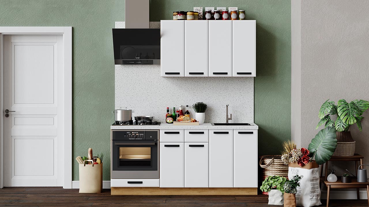 | Габаритный размер набора модулей без учета газовой плиты1 800 | Оттенок фасадаБелый | Цвет фасадаБелый супермат |
